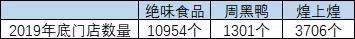 其后是煌上煌,2019年底拥有门店3706家,周黑鸭在三家里面拥有门店数量最少,2019年底为1301家。