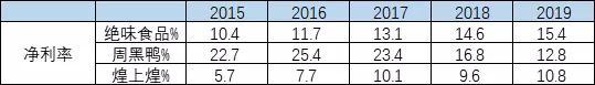 周黑鸭的净利率则不断下滑,从22.7%下降至12.8%。