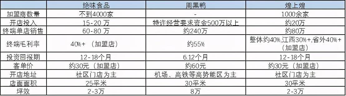 绝味食品和煌上煌的加盟为主,单店模型基本类似,