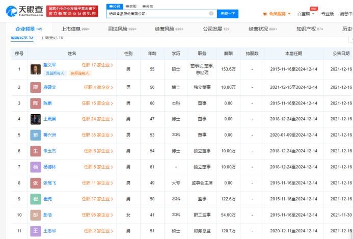 据天眼查显示,王志华2021年薪酬为120.7万元,比起董事长的薪酬来少了30多万,但差距没有很大。